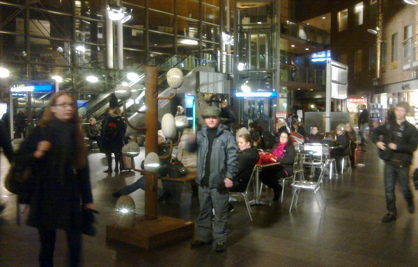 "Kiven hehku". Kari Alonen 2010. Keski-Suomi. Jyväskylä. Matkakeskus. Tiistai 2011-12-13 klo 16:05. Henkilöt ovat sattumalta kuvassa. Mobikuva: Pertti Manninen.